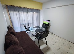 2 Ambientes todo a la calle, balcón saliente, sobre vereda de sol. Con cocina separada y baño completo. Preparado p/4 personas, un sommier de 2 plazas y un diván cama marinero. Con tv lcd c/cable y WIFI, microondas. FICHA 127.