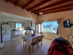 Casa moderna, de 2 dormitorios, baño completo, amplio living-comedor c/cocina integrada. Trotadora techada c/parrilla. Parque. FICHA 716.